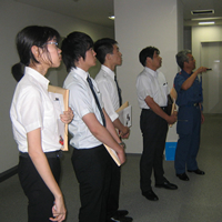 ![]() 学生インターン生と視察 |